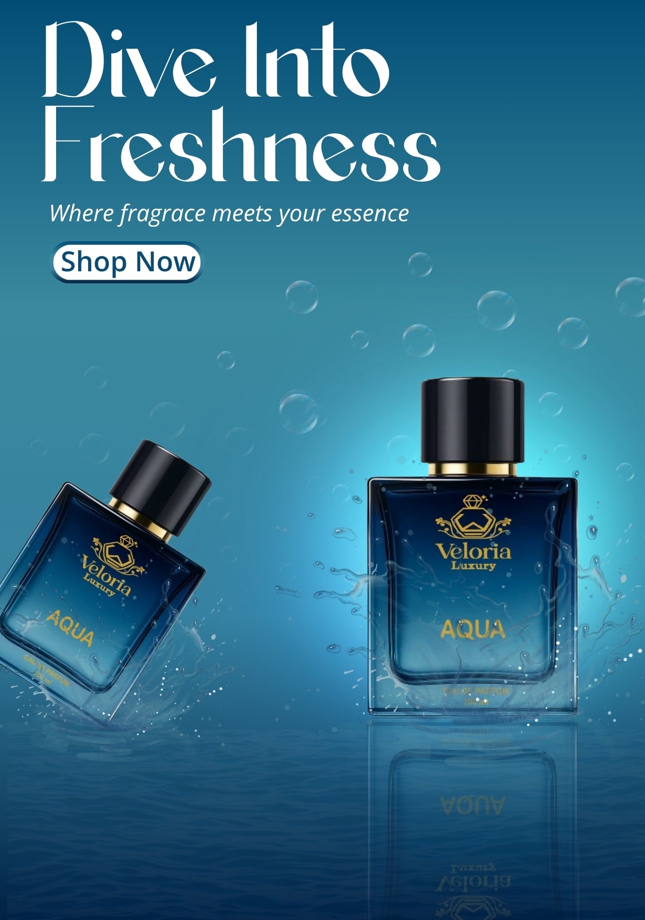 ‘AQUA’ by ‘VELORIA LUXURY’ is an aeromatic aquatic fragrance for Men. This fragrance aims to capture the freashness and strength of the ocean with its aquatic notes.